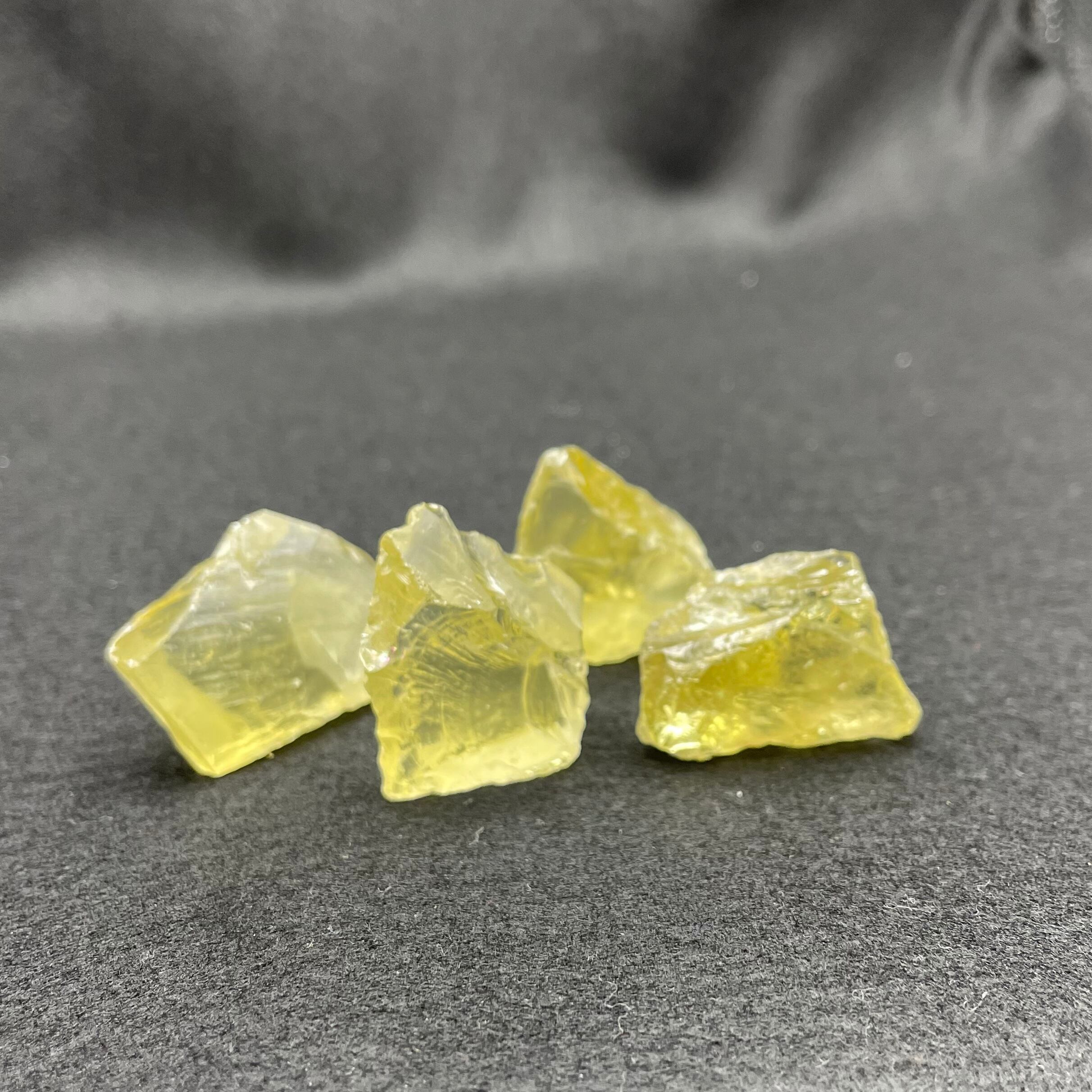 メタモルフォーゼスに放射線(ガンマ線)を照射すると真っ黒になります。黒くなったものを更に加熱(約300℃)することで、グリーン・ゴールドへと変化します。その際の温度差により多少色合いに違いが発生します。